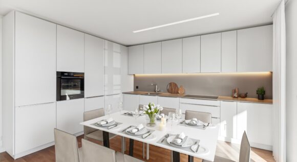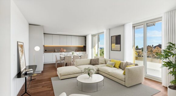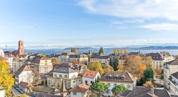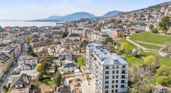 Les appartements contemporains et de standing, surplombent la rue du Faubourg de l’Hôpital sur une pente orientée face au lac. A mesure que l’on accède aux étages supérieurs, l’horizon s’ouvre et le regard se porte sur les toits adjacents jusqu’à révéler un panorama enviable parfaitement dégagé sur le lac et les montagnes.
